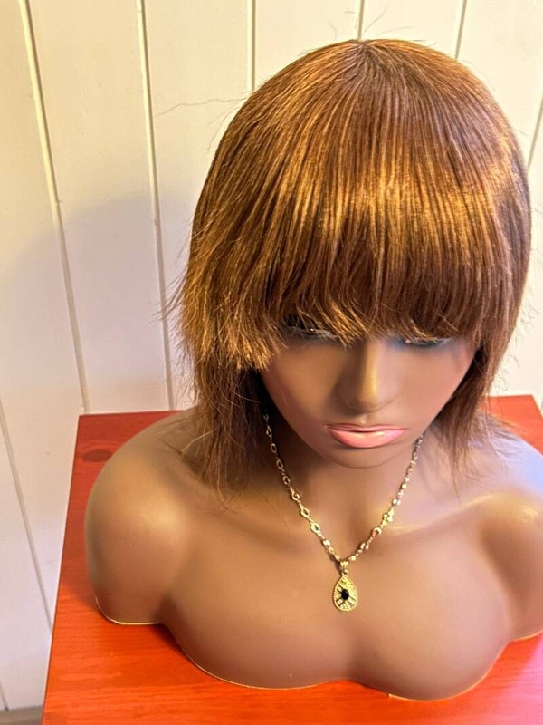 Perruque coupe chinoise, châtain foncé fait de cheveux 100% naturels